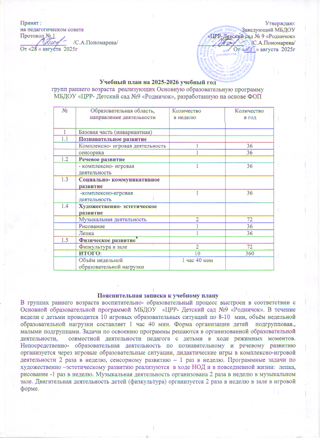 Учебный план для групп раннего возраста на 2025-2026 учебный год.